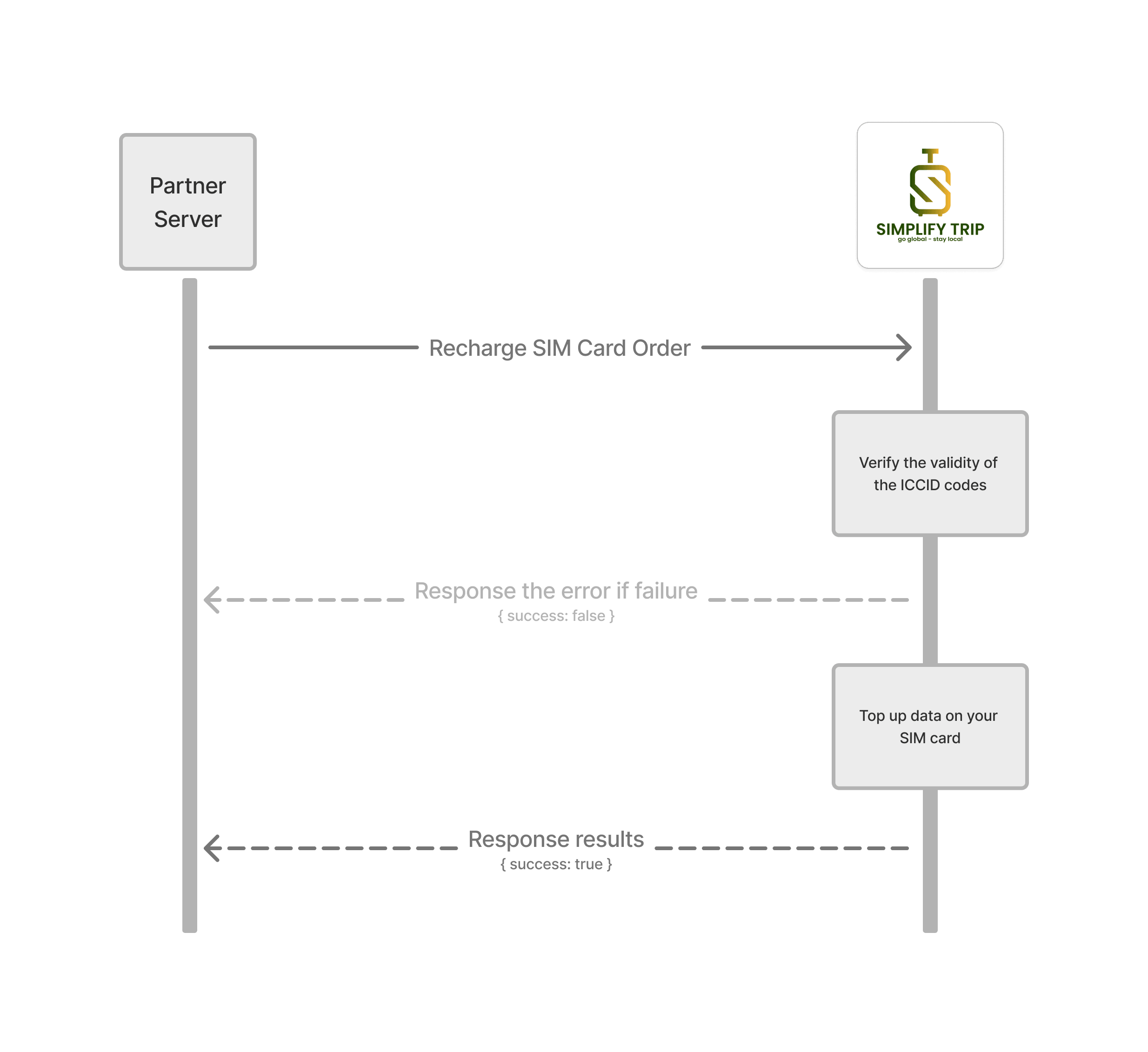 WorkflowsRecharge SIM DataSIM Data Recharge Workflow Here is the sequence flow of the integration Order Physical SIMAPI list